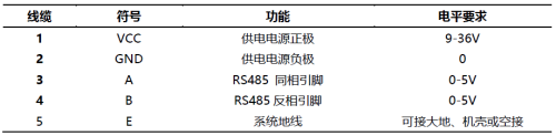 传感器采用5芯线缆,线缆定义说明如下: