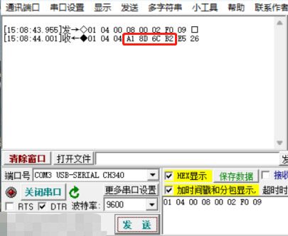 3、可以使用串口调试软件,使用命令来读取序列号(具体方法可参考说明书):
